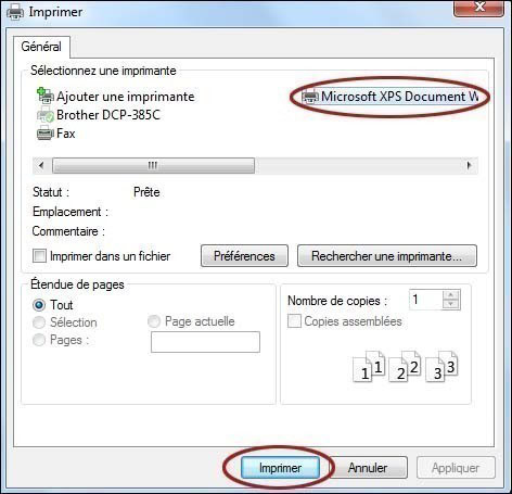 L'impréssion virtuelle dans un fichier XPS peut être utile pour