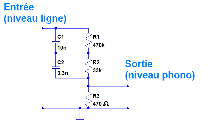 Trois résistances et deux condensateurs permettent de réaliser un préampli