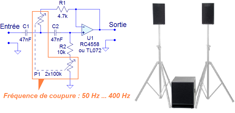 Avec un potentiomètre double, on peut réaliser un filtre actif