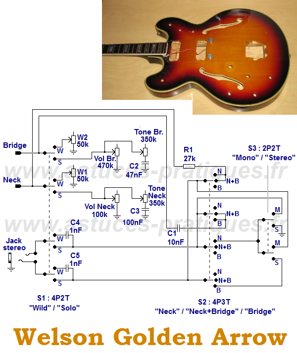 Une guitare électrique Welson à restaurer est prise comme exemple