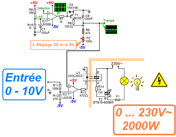 Ce schéma de variateur de lumière fonctionne avec une entrée
