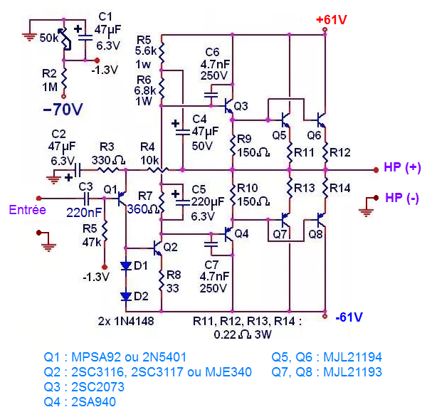 Un nouvel ampli à transistors bipolaires est présenté ici, schéma