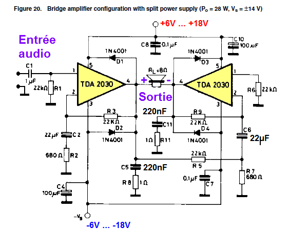 L'ampli TDA2030 peut être utilisé en bridge si on souhaite