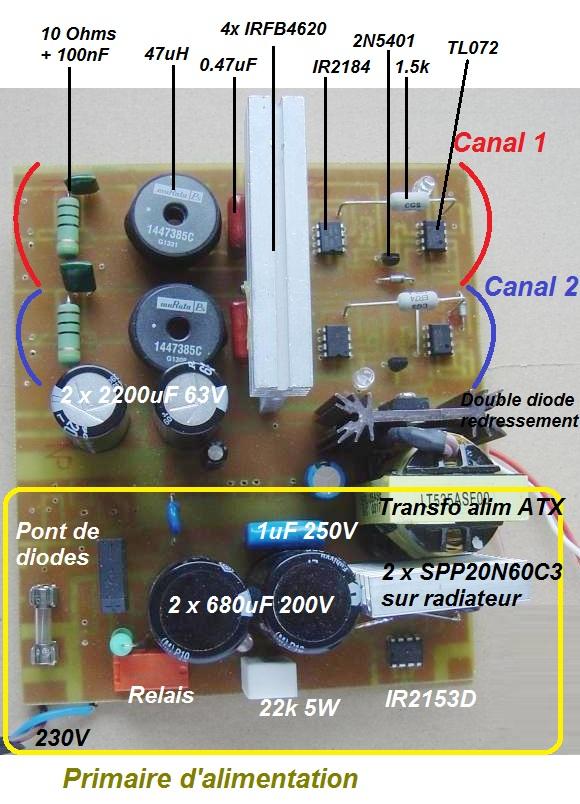Ampli classe D 500W à alimentation à découpage et rendement