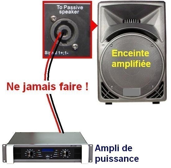 Le bornier Speakon d'une enceinte amplifiée ne doit jamais être