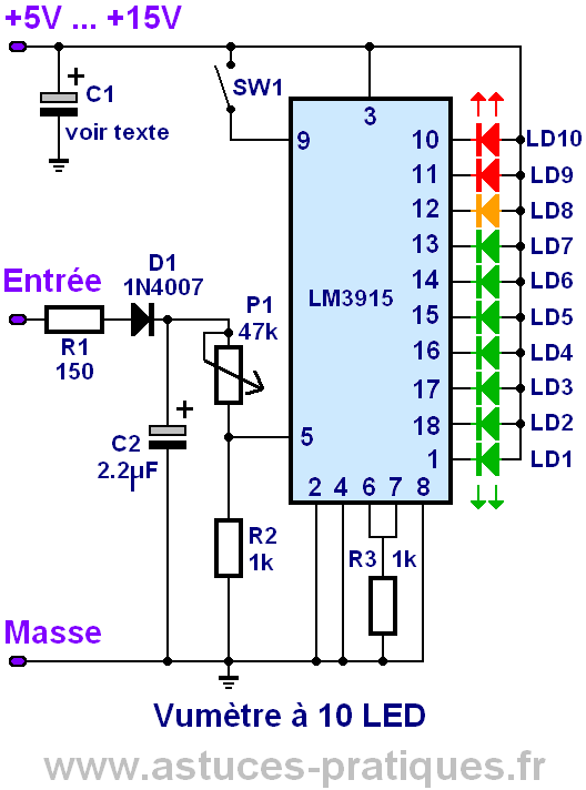 Vumètre 10 LED à LM3915