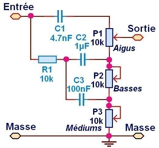 Un égaliseur 3 bandes pour guitare passif, ou réglage de