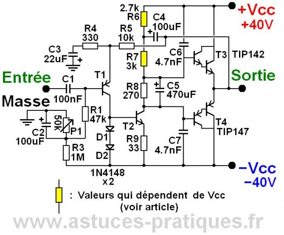 Voici un schéma d'ampli ultra simple et de grande puissance