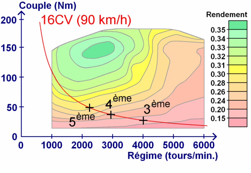 Le rendement d'un moteur thermique varie énormément selon le régime