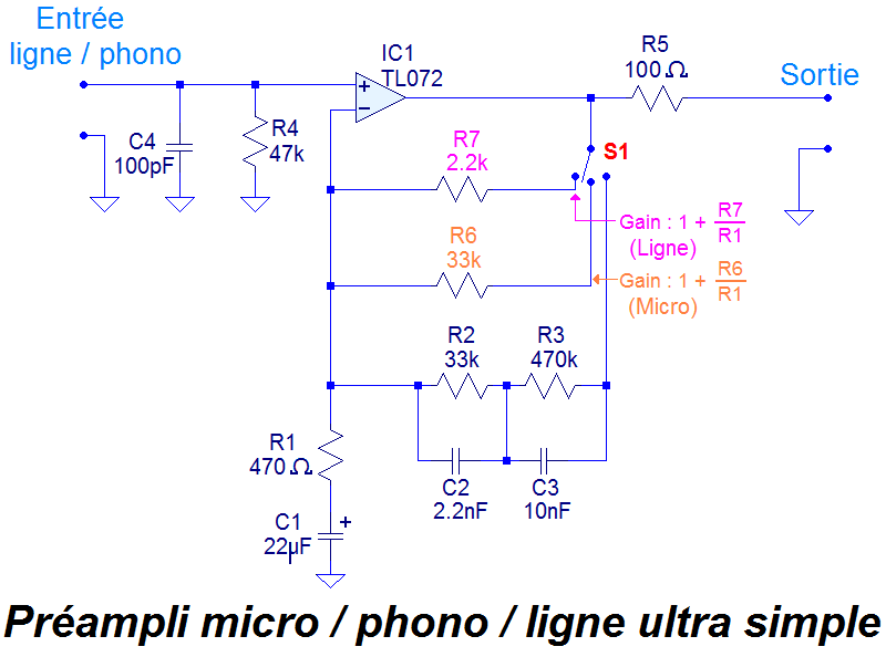La plus simple réalisation d'un préampli polyvalent (micro, phono ou