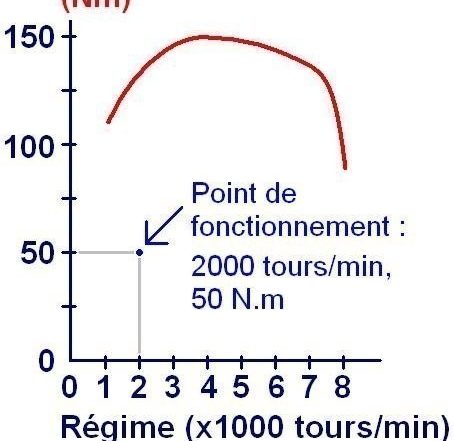 La puissance étant égale au produit du couple par le régime moteur (vitesse de rotation), on peut obtenir la même