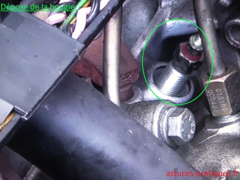 Voici l’emplacement des 4 bougies de préchauffage. Chassez les poussières avec de l’air comprimé si possible…à défaut essuyer au mieux avec un chiffon autour de chaque bougie.