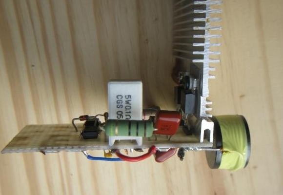 Le petit radiateur vient d’une alimentation de PC et a besoin d’être légèrement ventilé. On ne peut pas se passer de ventilateur, à moins de choisir un radiateur bien plus grand et dont les ailettes doivent être verticales pour évacuer mieux la chaleur (réduire la résistance thermique du radiateur).