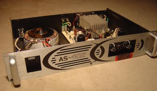 Cet article présente l'intérieur d'un ampli de sono : l'ampli Audiophony AS402. L'alimentation est confiée à un transfo torique classique