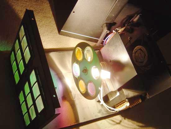 Une roue de couleur, deux ampoules halogène 24V 150W et un ensemble de lentilles sont la base de ce jeu