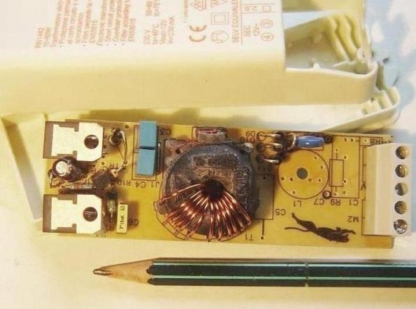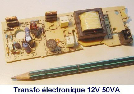 Un transformateur électronique pour lampes halogène 12V n'a rien à voir avec un transformateur classique 50Hz 220V. Le format du