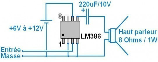 Ampli 1W très simple à 2 composants : schéma à LM386