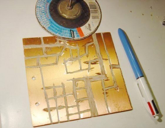 En une minute, avec une simple disqueuse, on peut réaliser un circuit imprimé ! On peut placer un disque au