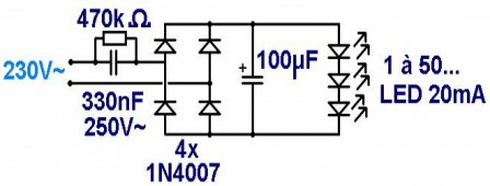 Les alimentations capacitives, dites à capa chutrice, permettent d'obtenir une basse tension sans transformateur. Cette basse tension n'est pas isolée