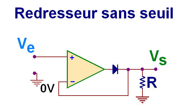 Le redressement sans seuil avec un ampli op est un montage très classique et ne repose que sur une diode