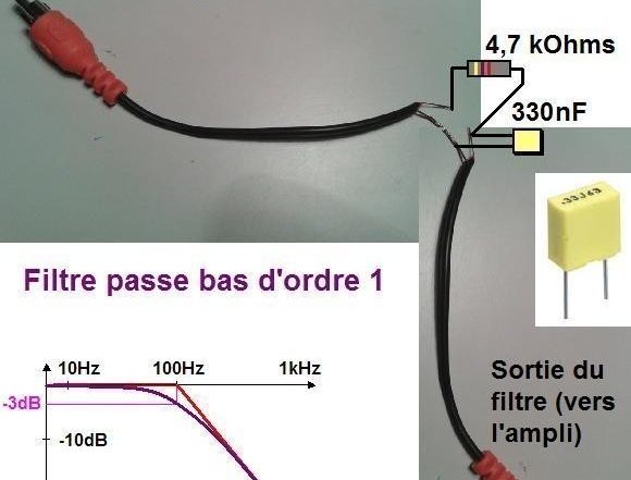 Deux composants (une résistance et un condensateur) suffisent pour réaliser un filtre actif en quelques minutes pour caisson de basse