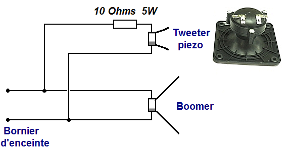 Ultra simple comme filtre, une seule résistance permet de filtrer un tweeter piezo pour réaliser une enceinte sono rapidement. Il