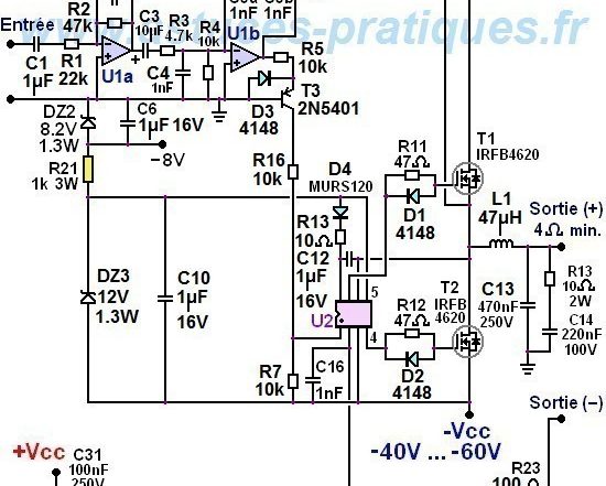 Le driver IR2184 est adapté à la réalisation d'ampli classe D simples et puissants. Vous trouverez ici un schéma et