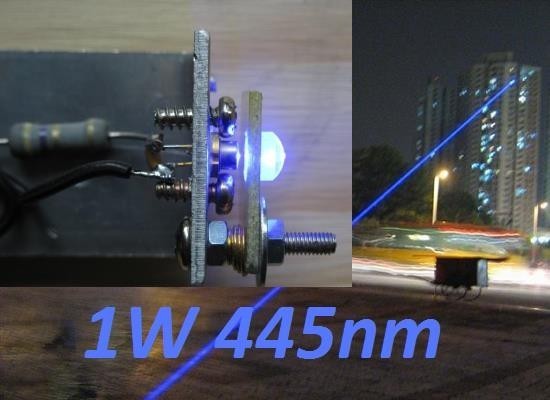 Un laser bleu 1W ou 2W peut se construire en achetant seulement la diode laser bleue (séparément). Cela permet de