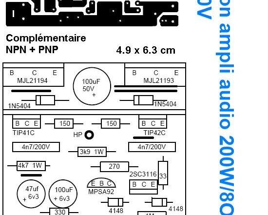 Voici un typon pour réaliser un ampli classe D de grande puissance. Il suffit d'ajouter un petit radiateur pour fixer