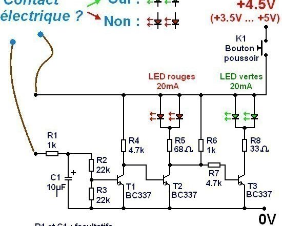 Une LED verte ou une LED rouge s'allume s'il y a ou pas continuité d'un circuit électrique. Cet article présente