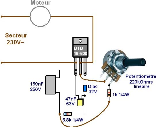 Un variateur de vitesse peut se réaliser simplement et rapidement avec seulement quelques composants. Tout le montage du variateur se