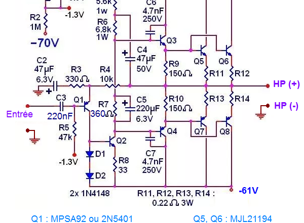 Un nouvel ampli à transistors bipolaires est présenté ici, schéma mis à jour, circuit imprimé typon et implantation des composants.