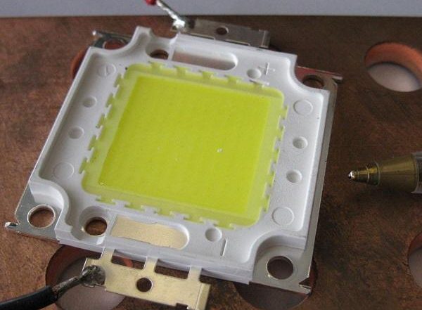Une LED blanche de 100 Watts possède une très haute luminosité et doit obligatoirement être refroidie sur un grand radiateur.
