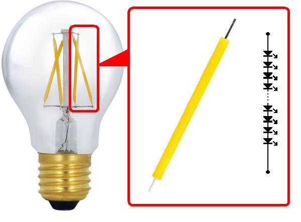 A LED, mais pas laide, l'ampoule à filament LED utilise des LED montées en série sur des baguettes de circuit