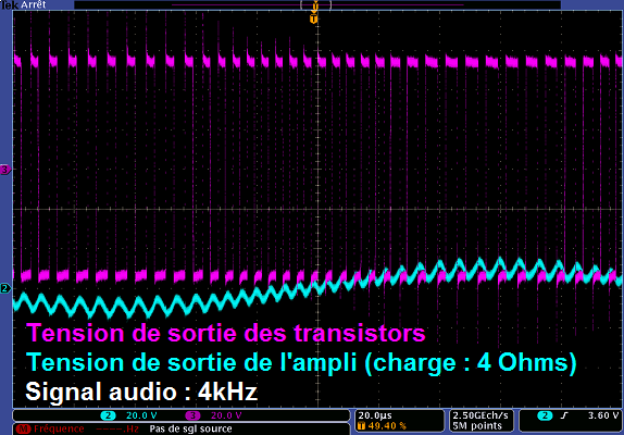 Dans un ampli classe D stéréo, on peut entendre un sifflement gênant et variable dans les haut-parleurs ("beat tone"). Ceci