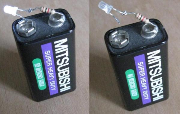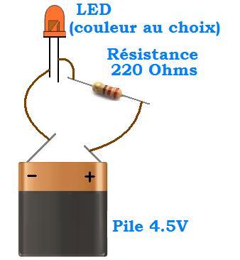 Il est possible de brancher une LED sur une pile : pour cela, il suffit d'une résistance et d'un peu