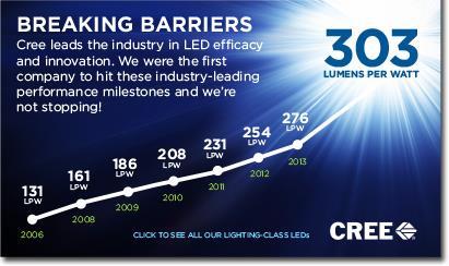 Un record d'efficacité lumineuse a été battu pour les LED qui peuvent maintenant atteindre 300 lumens par Watt. Le fabricant