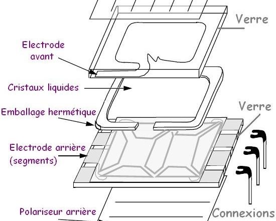 Un écran LCD n'est rien d'autre qu'un empilement de 5 couches différentes : le polariseur avant, l'électrode avant, les cristaux