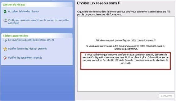 Windows xp possède sa propre plateforme qui gère les réseaux sans fil, qui marche très bien d'ailleurs, mais parfois il