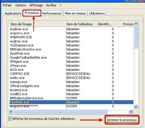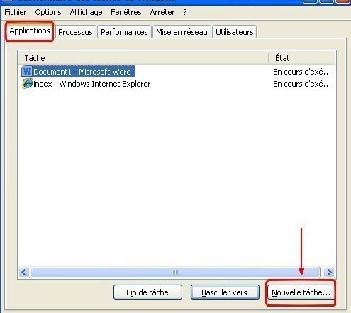 Commencez d'abord par lancer le gestionnaire de tache avec la manipulation clavier Ctrl Alt Supr. Une fois dans le gestionnaire