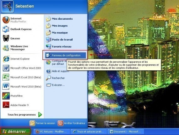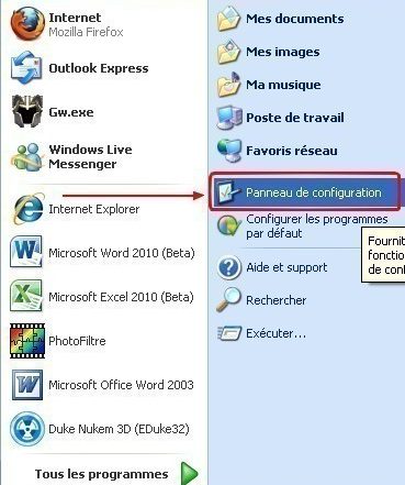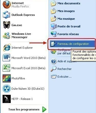 Dans un premier temps cliquez sur démarrer et allez dans le panneau de configuration. Double cliquez