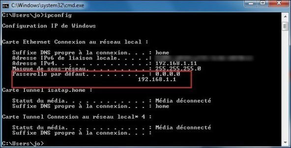 Problème passerelle par défaut 0.0.0.0 sur windows seven