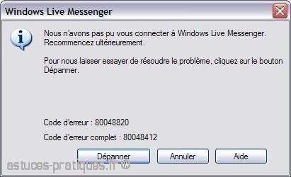 Votre connexion Internet marche correctement, et votre navigateur vous donne accès à tous vos sites, et pourtant MSN ne veut