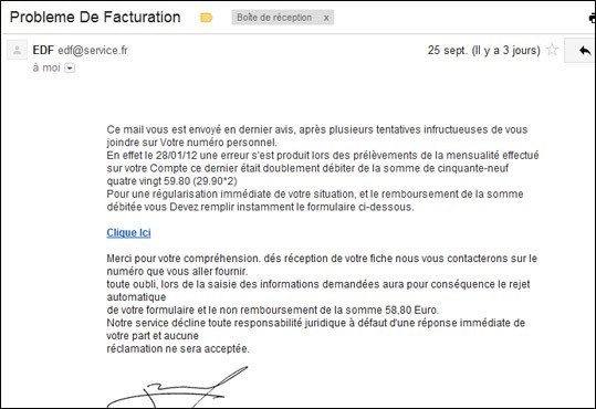 Voici un petit post pour vous parler d'un nouveau mail frauduleux qui se répand sur internet. Il sagit d'un email