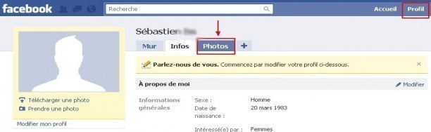 Sur votre page d’accueille de Facebook, allez dans « profil ». Sur la page du profil cliquez sur