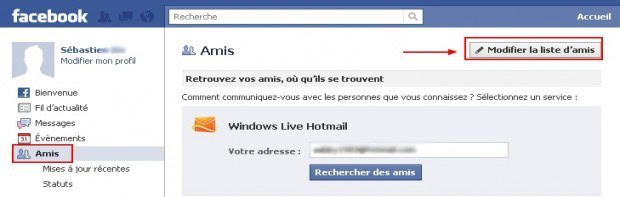 Dans un premier temps sur votre page Facebook, cliquez sur « Amis » puis allez dans « modifier la liste d’Amis ».