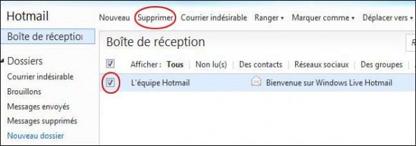 Supprimer ou déplacer un mail sur hotmail