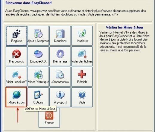 Nous allons mettre EasyCleaner à jour afin d'optimiser la correction du registre, fonction principale de ce logiciel. Dans le menu