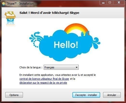 Installation de Skype : Téléchargez la dernière version de Skype sur le site officiel www.skype.com ou sur ce lien suivant : http://www.01net.com/telecharger/windows/Internet/communication/fiches/27115.html