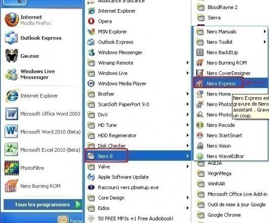 Nero express est une version simplifier de Nero il permet une utilisation plus transparentes des fonctions principales de Nero Burning
